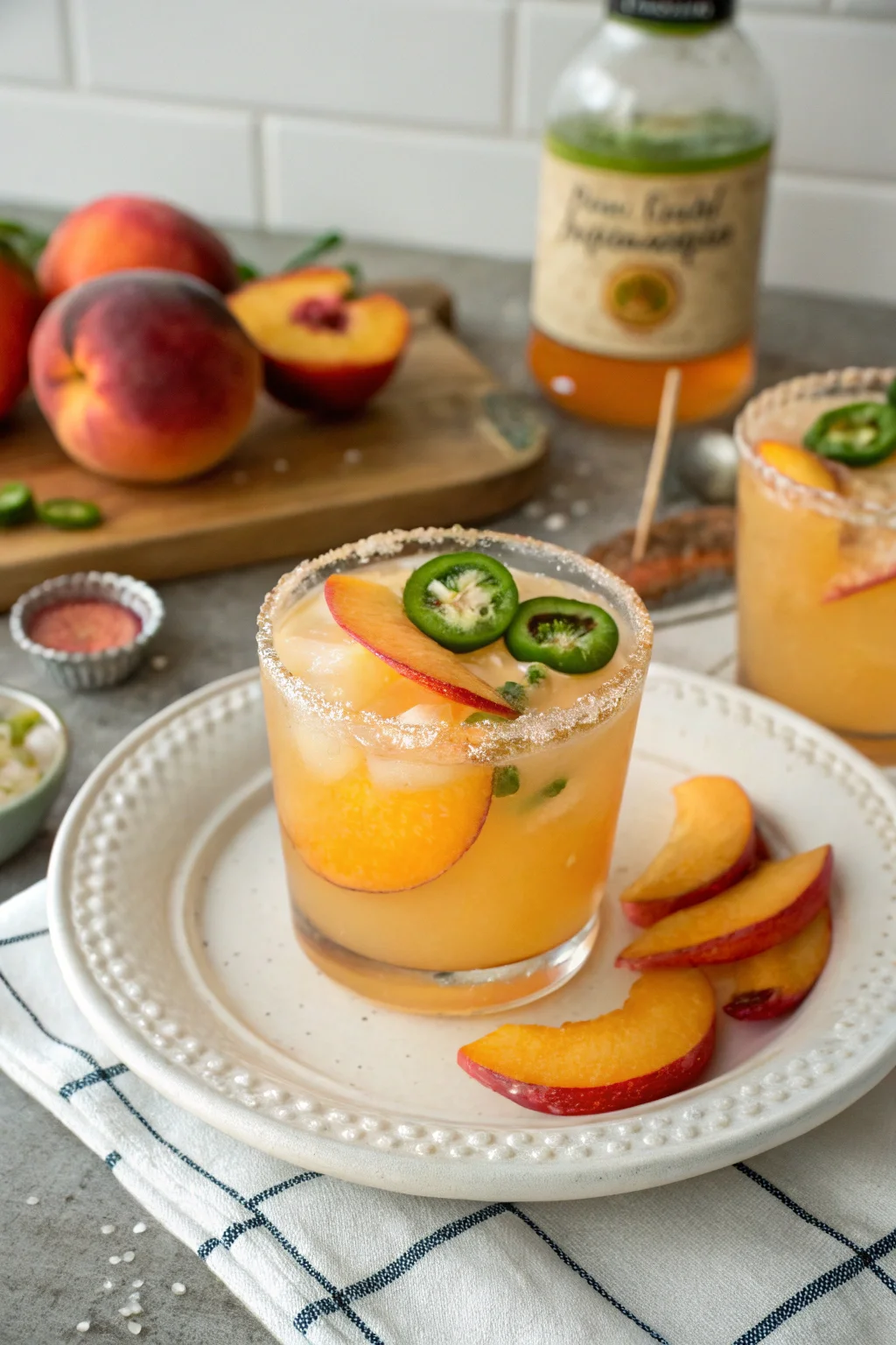 A delicious plate of Peach Jalapeño Margaritas