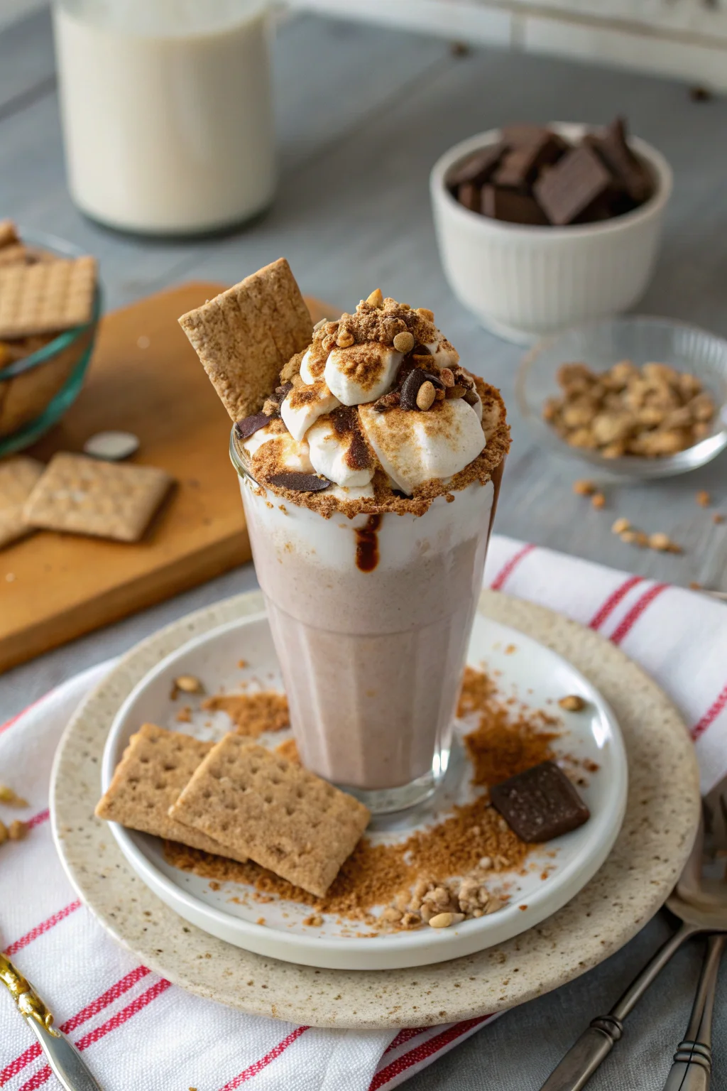 Blend the Good Stuff: In a blender, combine toasted marshmallows, ice cream, graham crackers, and a splash of milk. Blend until it’s mostly smooth. Let it rest a bit so the crackers can soften up and become part of the milkshake family.