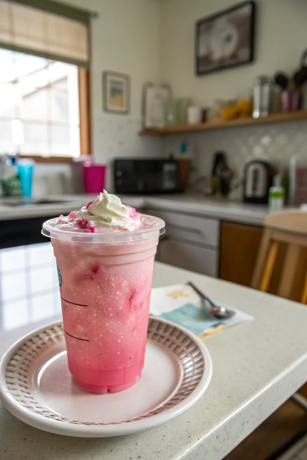 A delicious plate of Starbucks Pink Drink